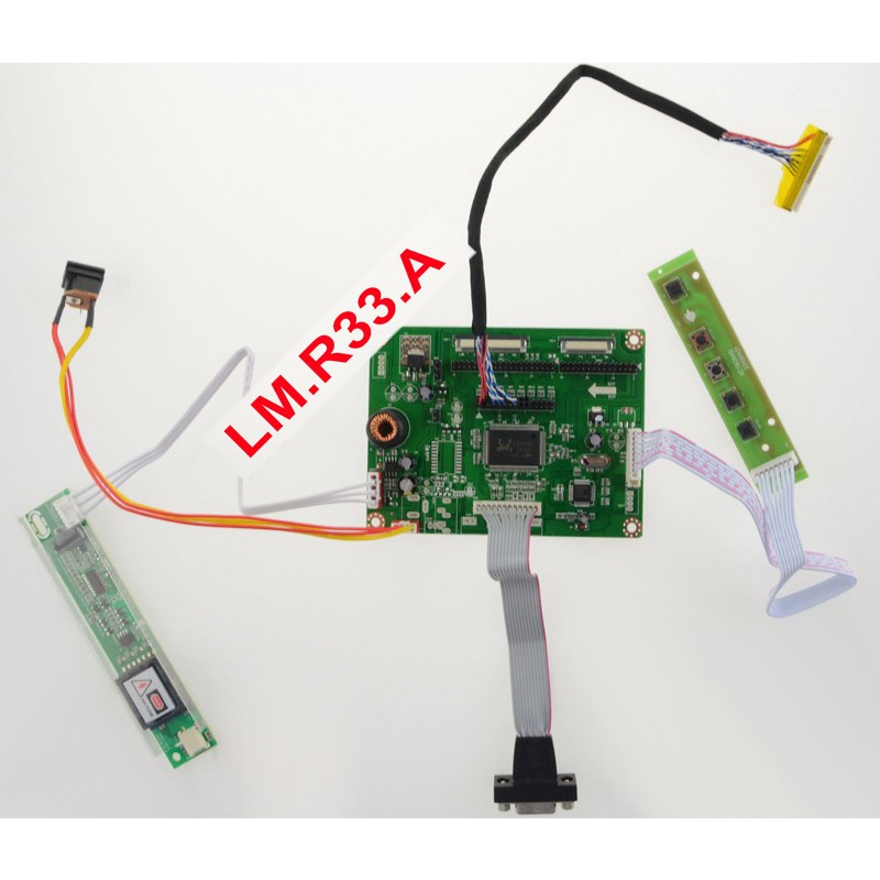 LM.R33.A LCD Display Controller Board Kit includes 1pcs LM.R33.A controller board, 1pcs LVDS cable, 1pcs LCD inverter with cable, 1pcs OSD board with cable.