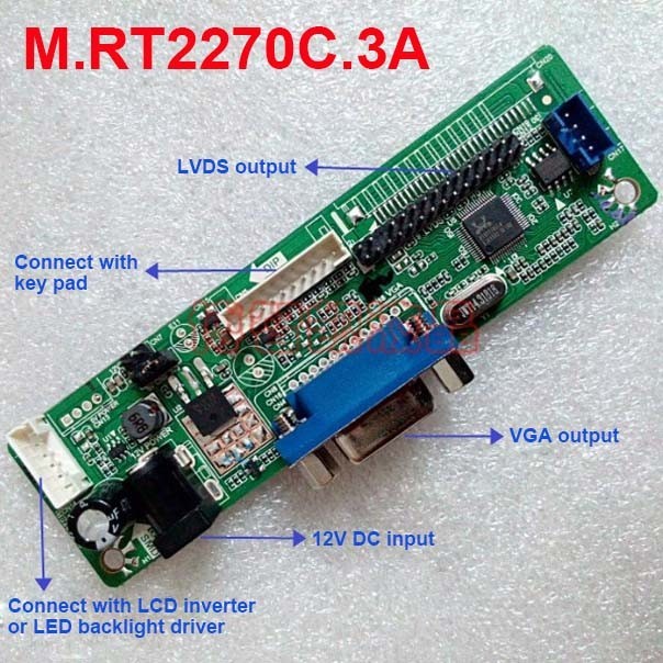 Product description: M.RT2270C.3A LCD Display Controller Board with VGA input, LVDS panel signal output,support Max resolution 1920x1200 and 1920x1080