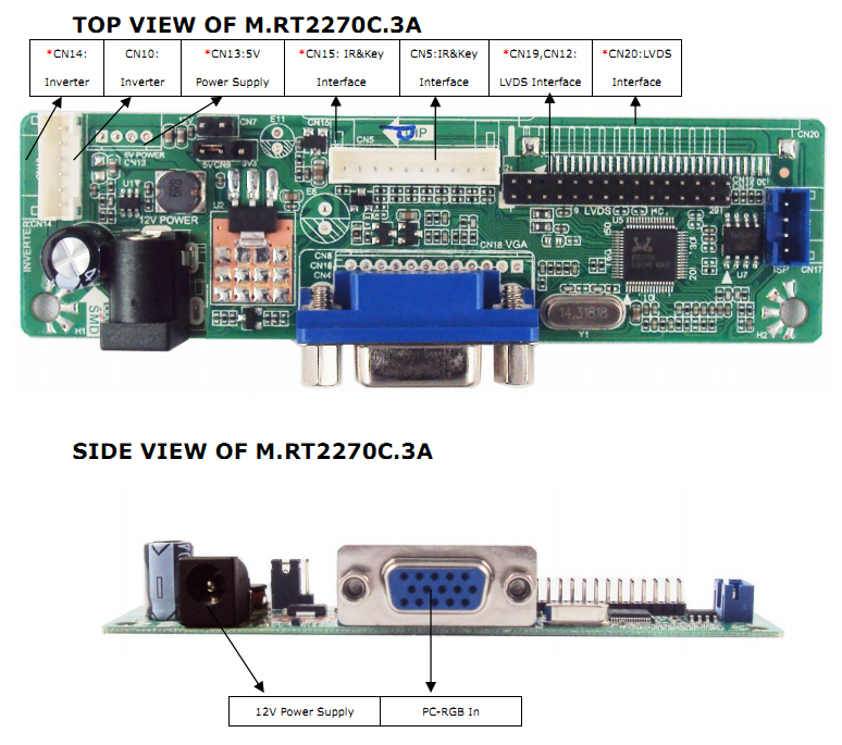 M.RT2270C.3A is a LCD monitor control board,The resolution is up to 1920x1080. Its color reach 24bit potentially. H-Frequency signal range from 30 to 80 KHz, V-Frequency signal 60 to 75 Hz.